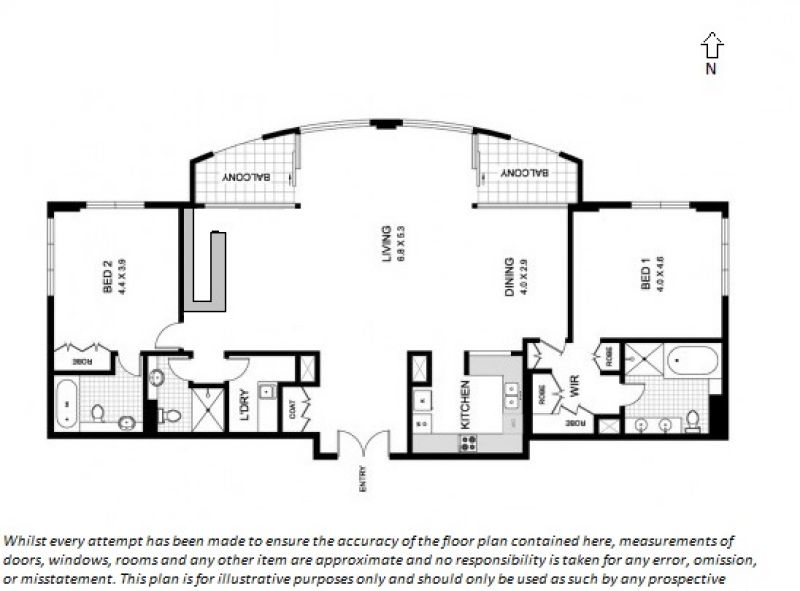 The Apartment - Two bedrooms with built in wardrobes, two ensuites, large lounge and dining areas, kitchen with gas cooking, two balconies, internal laundry and secure basement valet parking.
