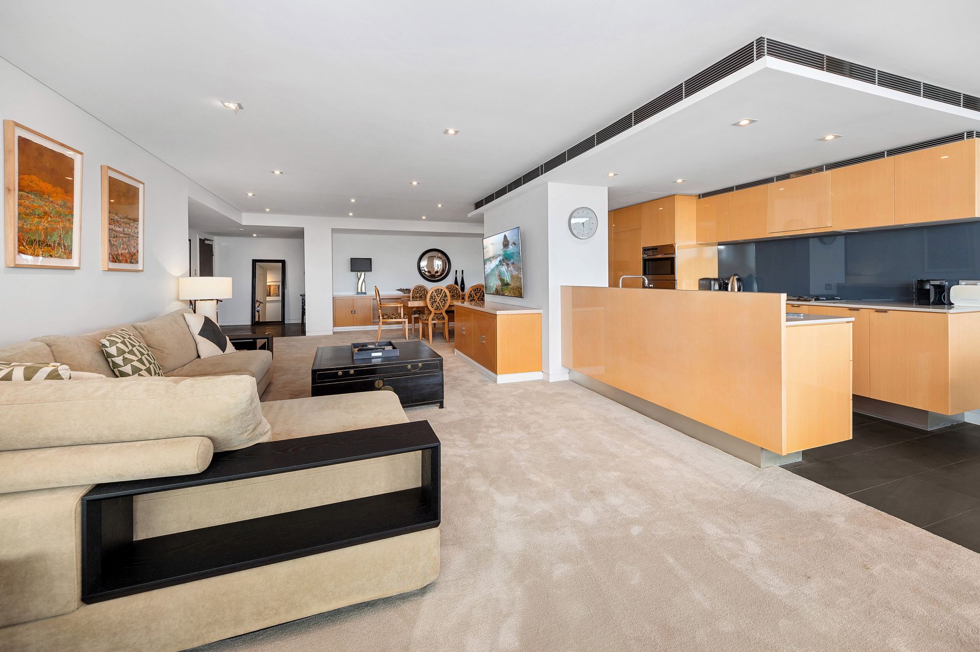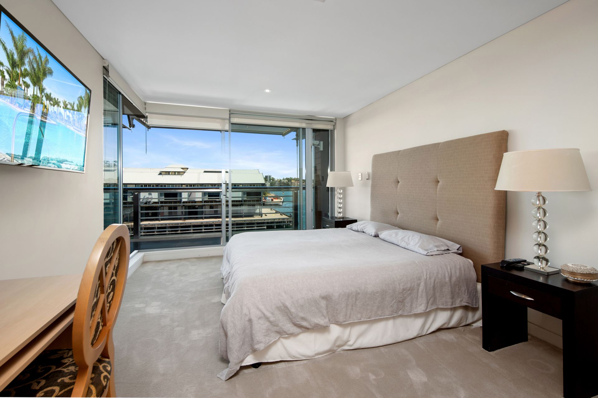 This fully-furnished, executive, three-bedroom apartment boasts sleek and stylish finishes with unique and enticing views of Sydney Harbour & Goat Island. The expansive balcony runs adjacent to the living area and all three bedrooms providing an unparalleled entertaining space or the perfect spot to unwind.