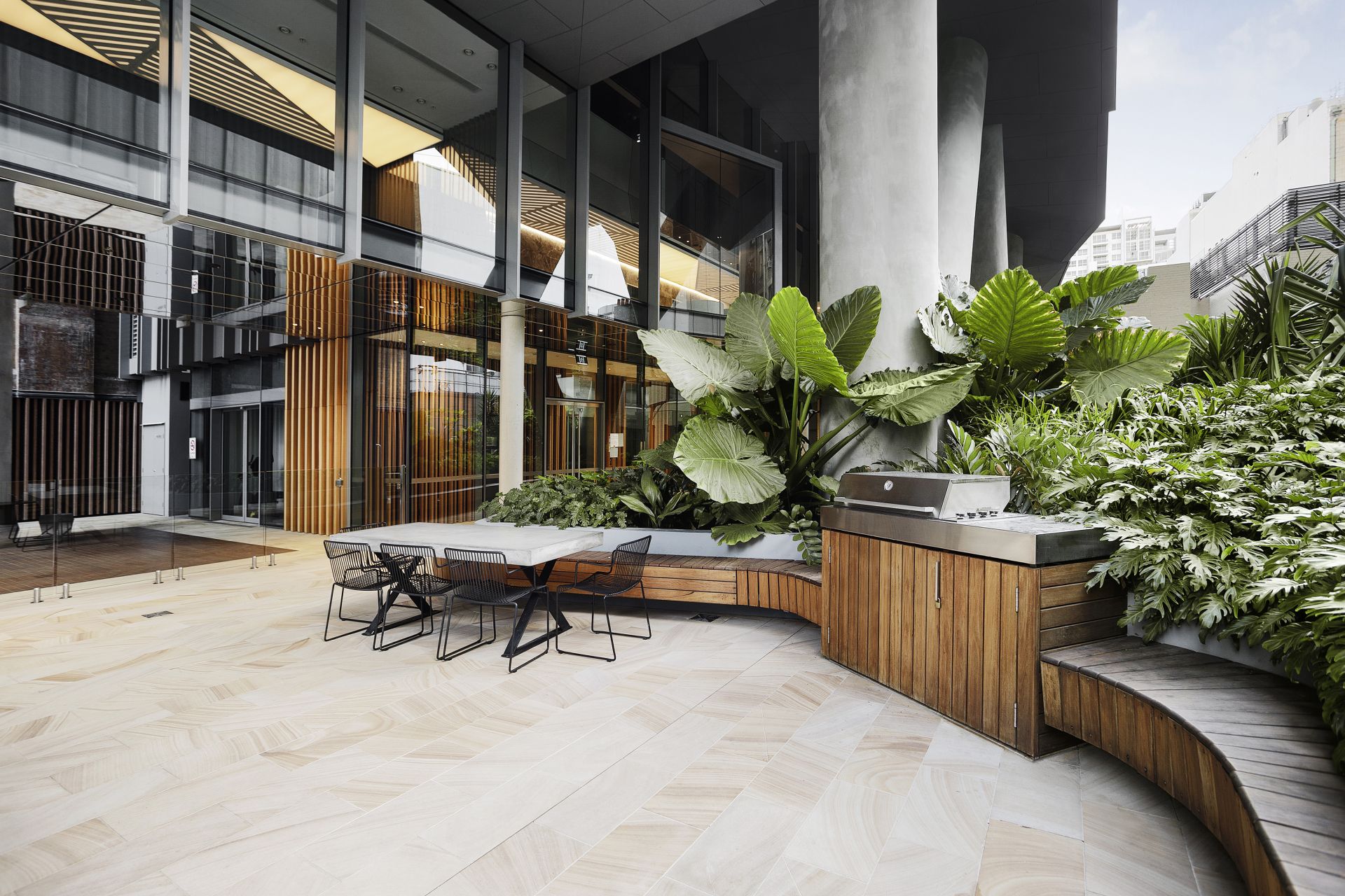 - Poolside barbecue entertaining area