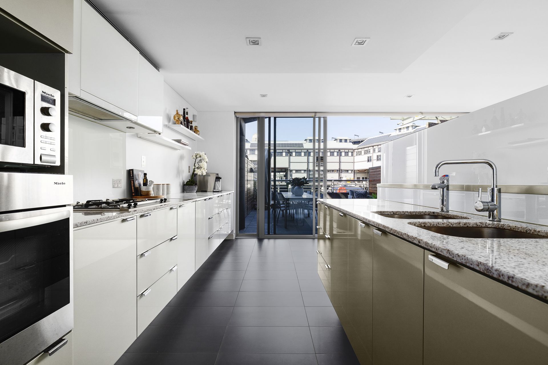 The expanse – Floor to ceiling glass glides away to meld sundrenched interiors with a stunning flagstone and timber patio, creating the ultimate in sumptuous, secluded indoor outdoor living that fully capitalises on this waterfront outlook.