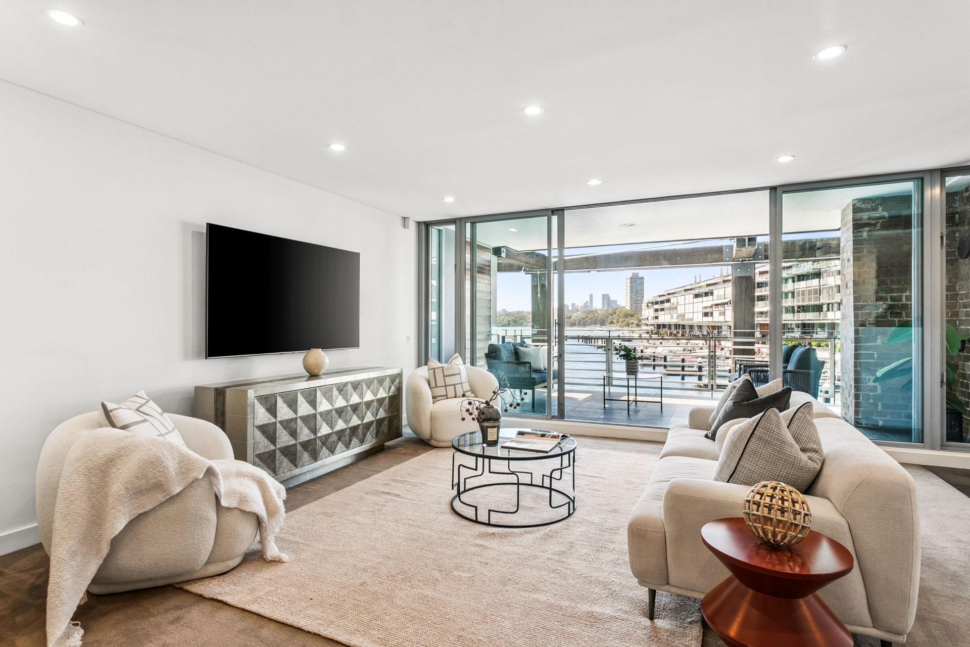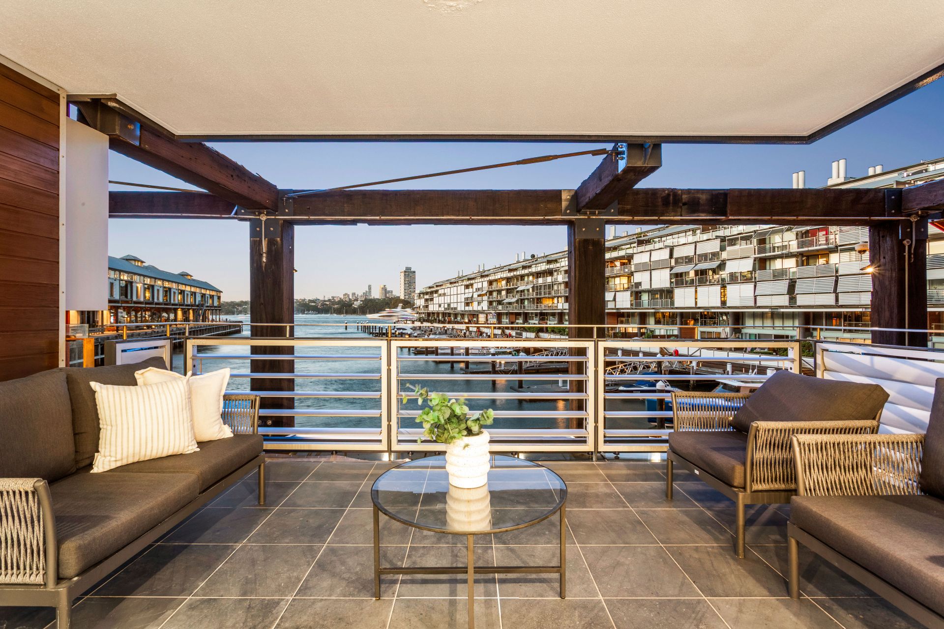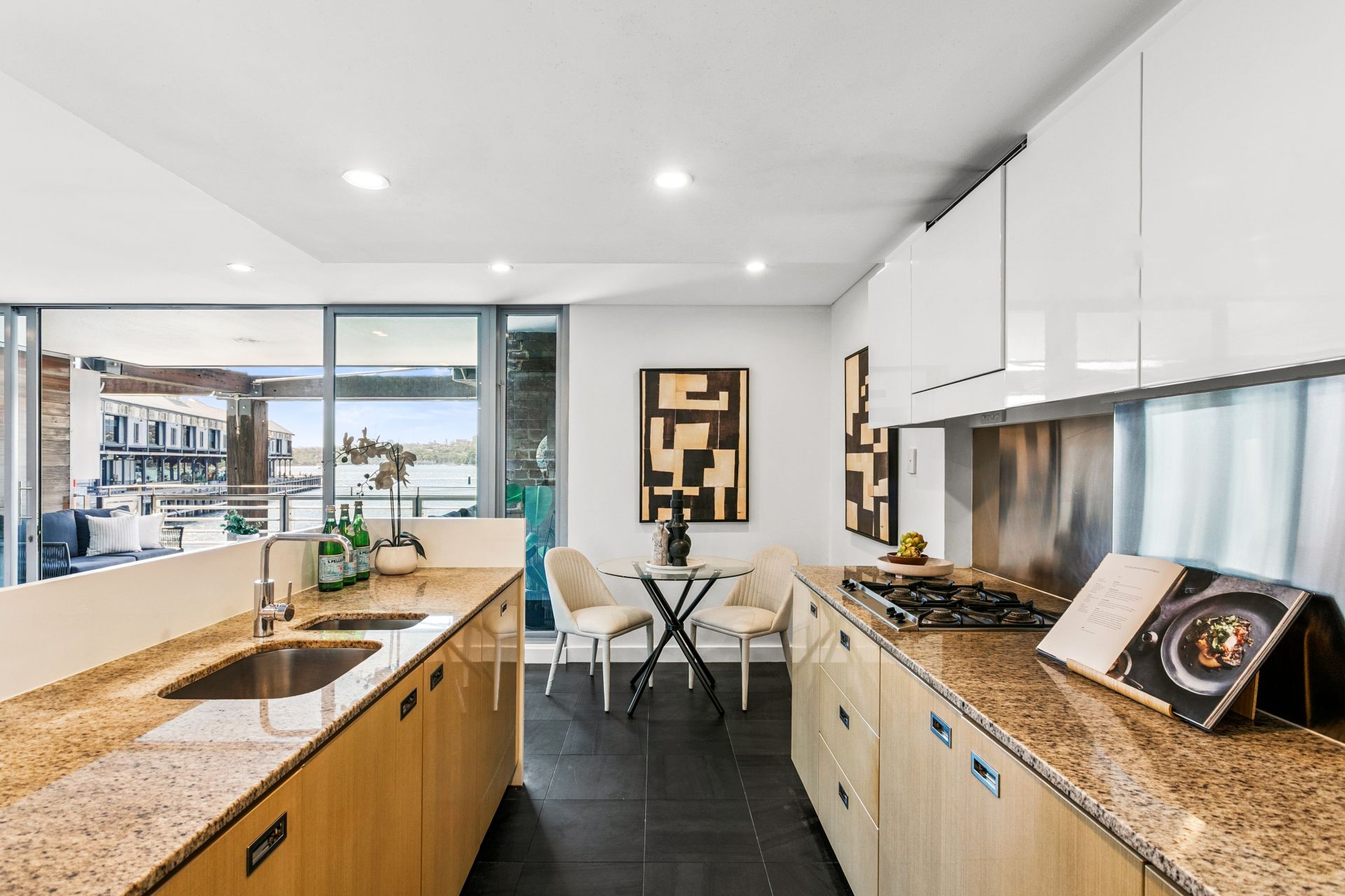 - Floor-to-ceiling glass maximising views and connection to harbour